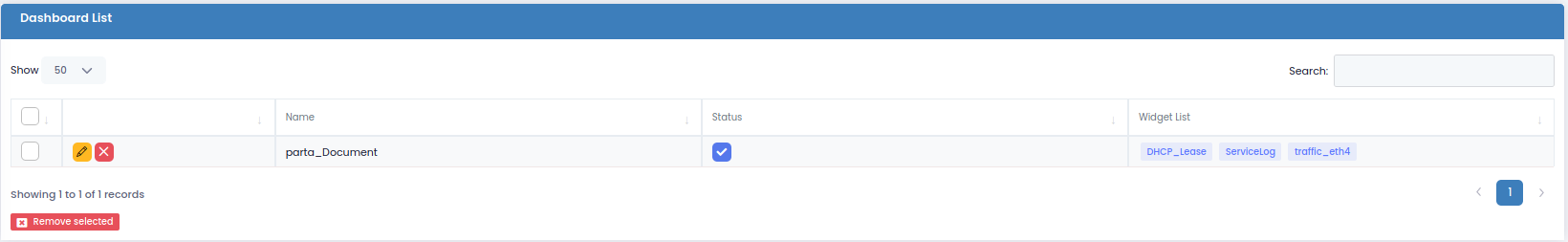 Configuration -> Widget -> New Dashboard arayüzünde sadece isim verilerek bir Dashboard oluşturulabilir ve Monitoring ekranında çalışması isteniyorsa Status aktifleştirilmelidir.&#x20;