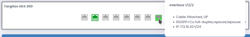 Interface arayüzünün sağ üst köşesinde, Targitas üzerinde hangi portların aktif olduğunu gösteren bir widget bulunmaktadır. Bu widget'ta yeşil renkle işaretlenen aktif portların üzerine geldiğinizde, seçilen port hakkında daha fazla bilgi alabilirsiniz.