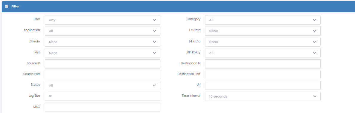 | DPI Policy       | Configuration -> DPI -> Policy arayüzünde oluşturulan DPI Politikalarına özel filtreme gerçekleştirilebilir.                                                                        |