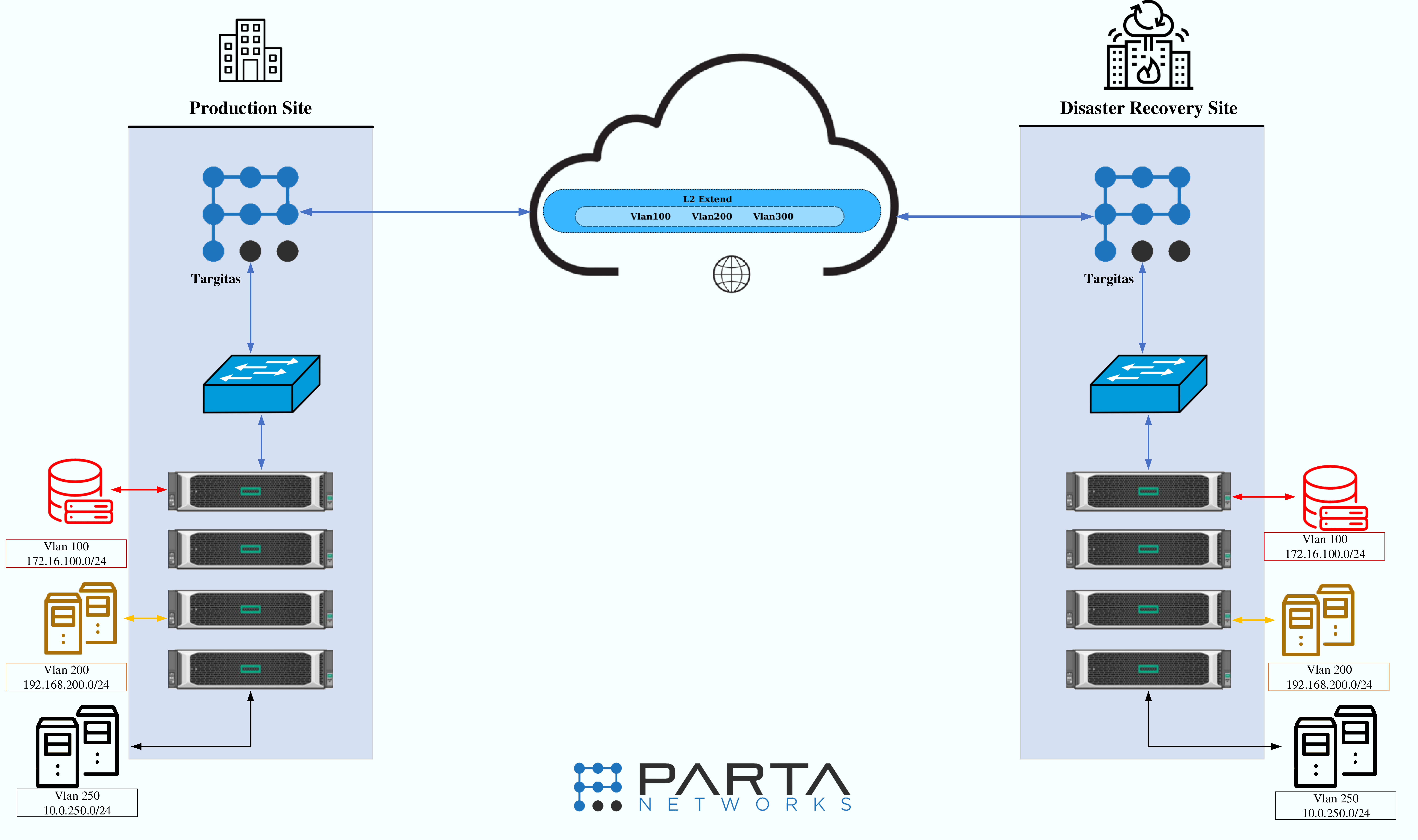 2.Yedeklilik ve Felaket Kurtarma: Layer 2 Extend, felaket kurtarma senaryolarında kullanılabilir. Ana veri merkezi veya üretim alanı arızalandığında, Disaster Recovery Site gibi yedek bir alanda ağ trafiği yönlendirilebilir, böylece kesinti minimum düzeyde tutulur.