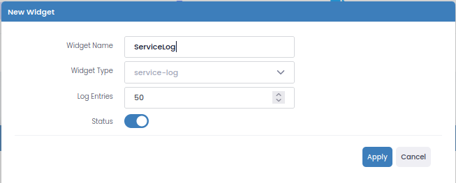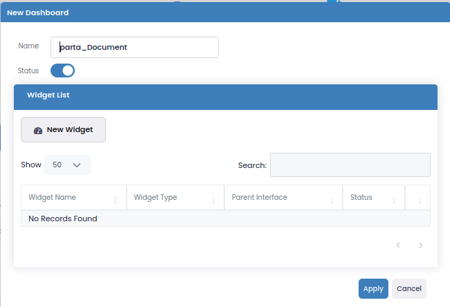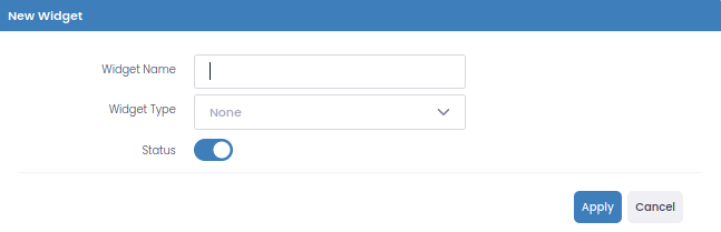 Configuration -> Widget -> New Dashboard arayüzünde sadece isim verilerek bir Dashboard oluşturulabilir ve Monitoring ekranında çalışması isteniyorsa Status aktifleştirilmelidir.